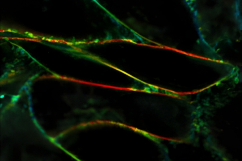 Fluorescence anisotropy imaging was used to distinguish liquid-ordered and liquid-disordered domains in giant unilamellar vesicles. Differences in polarization retention revealed variations in molecular orientation and rotational mobility across the membrane, enabling spatial mapping of structural heterogeneity at the micrometer scale.