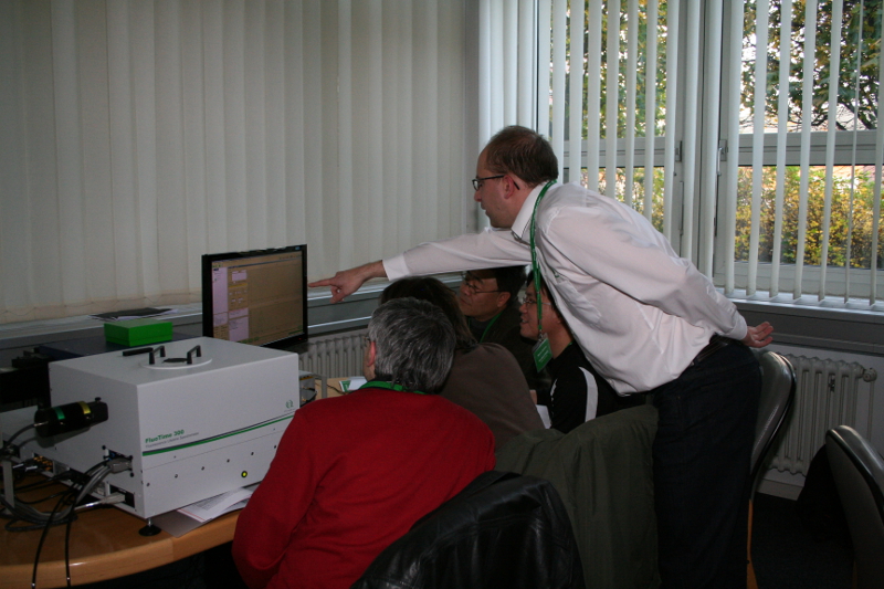 The lectures on Wednesday and Thursday covered advanced time-resolved fluorescence topics and data analysis. Applications of fluorescence in biophysics, sensing, clinical chemistry or material science were presented along with an introduction into fluorescence microscopy.