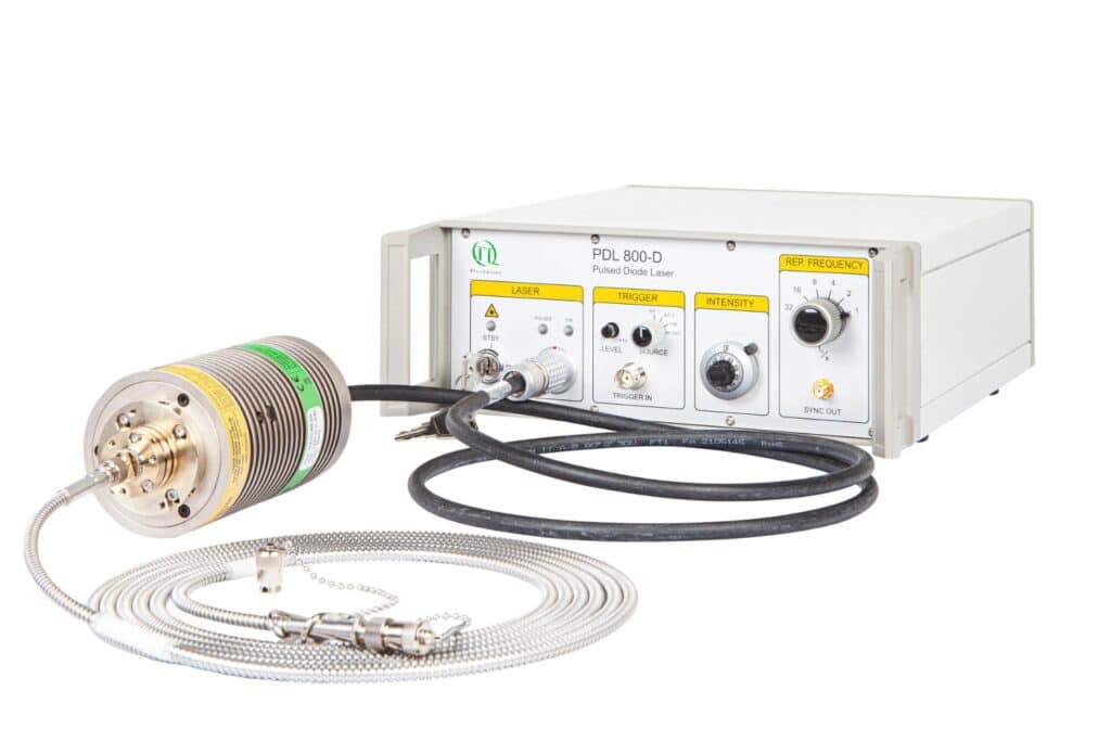 PDL 800-D with laser head of the LDH Series.PDL 800-D is designed for seamless operation with PicoQuant’s LDH and LDH-FA picosecond diode laser heads as well as the PLS Series of sub-nanosecond pulsed LEDs. This broad compatibility covers a wide spectral range and supports both laser- and LED-based excitation schemes. Light sources can be exchanged quickly by simply connecting a different head, allowing straightforward adaptation to changing experimental needs.