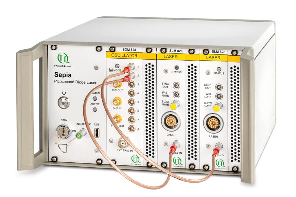 Sepia PDL 828 operating with LDH laser heads and compatible with LDH, LDH-FA, and PLS Series light sources for flexible multi-wavelength excitation.Sepia PDL 828 is fully compatible with PicoQuant’s LDH, LDH-FA and PLS Series, supporting picosecond pulsed diode lasers and sub-nanosecond LEDs across a wide spectral range. Laser heads can be exchanged easily, enabling fast adaptation to different experimental requirements.